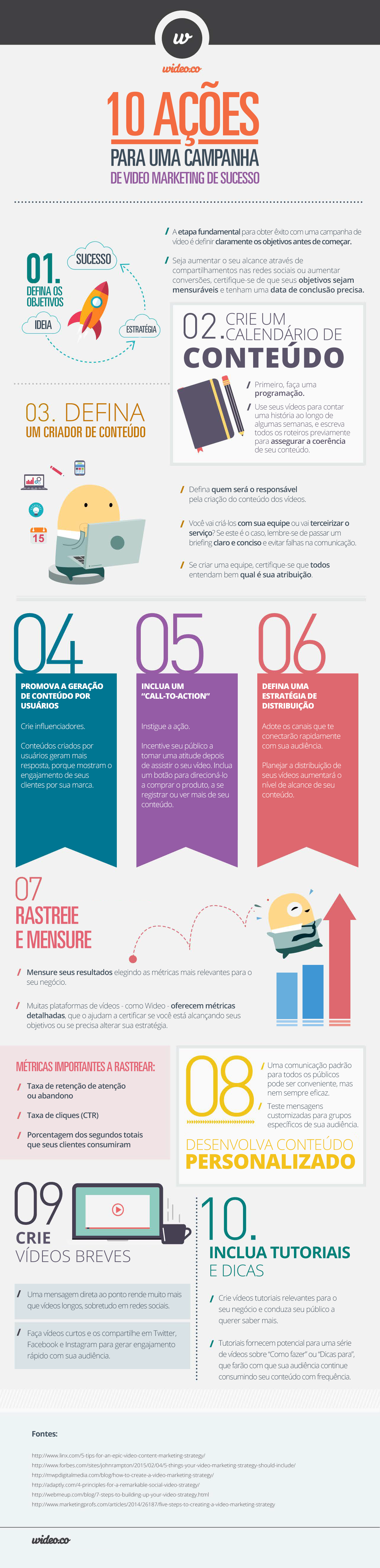 Parece incrível, não? Para ajudá-lo nesta empreitada, fizemos um infográfico com as 10 ações essenciais que podem garantir que sua campanha de vídeos seja eficaz e realmente impactante.