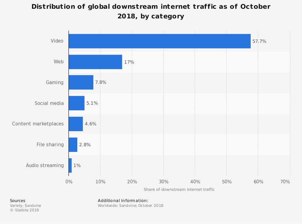 Cisco took notice of the video trend a few years ago and predicted that video traffic would comprise 82% of consumer internet traffic by the end of 2022.